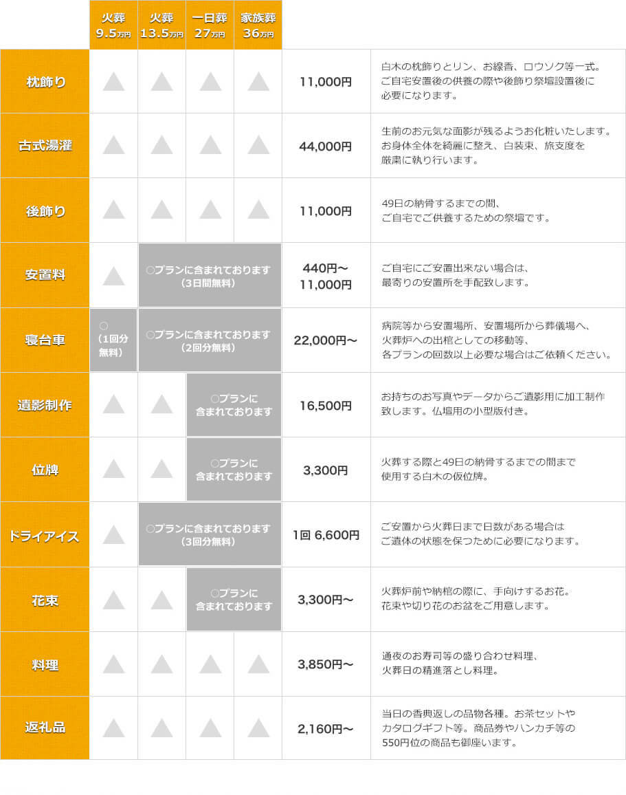 | 葬儀プラン | 火葬式12.1万 |